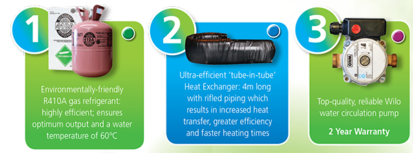 Domestic Alliance Heat Pump units comfortably heat from 100 litres to 500 litres of water, while the largest Alliance commercial unit is 80 kW, capable of heating thousands of litres per hour, with water temperature adjustable from 40º to 60º. Alliance Heat Pumps are ideal for commercial applications such as hotels, guesthouses, B&B’s, hostels, factories and offices. Alliance Heat Pumps are backed by Nationwide distribution and support. Below are some key facts why Alliance should be your only choice